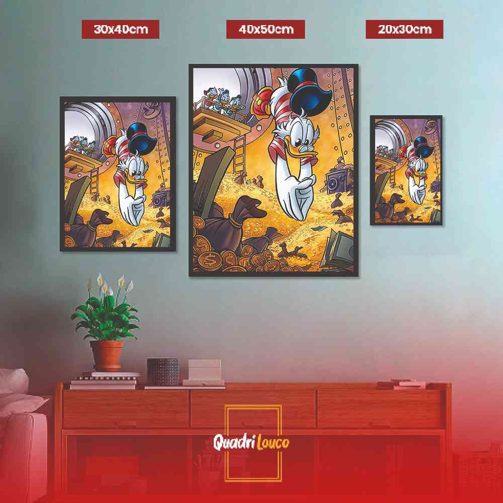 Quadro Decorativo Grande Tio Patinhas Rico Dinheiro Para Sala Escritório Luxuoso