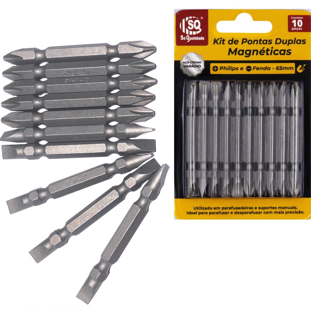 Kit Ponteira Parafusadeira Com 10 Bit Ponta Dupla Magnético