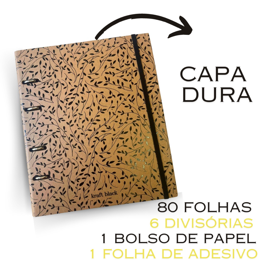 Caderno Argolado Fichário Kraft Black Folhagem 80 fls