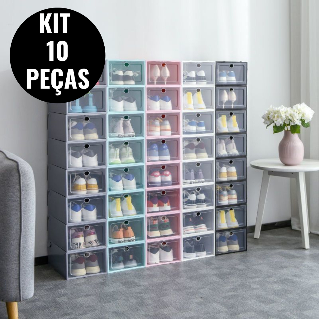 Kit Caixa Organizador Para Tênis Sapatos Multiuso Empilhável Tampa Flip Feminino Masculino