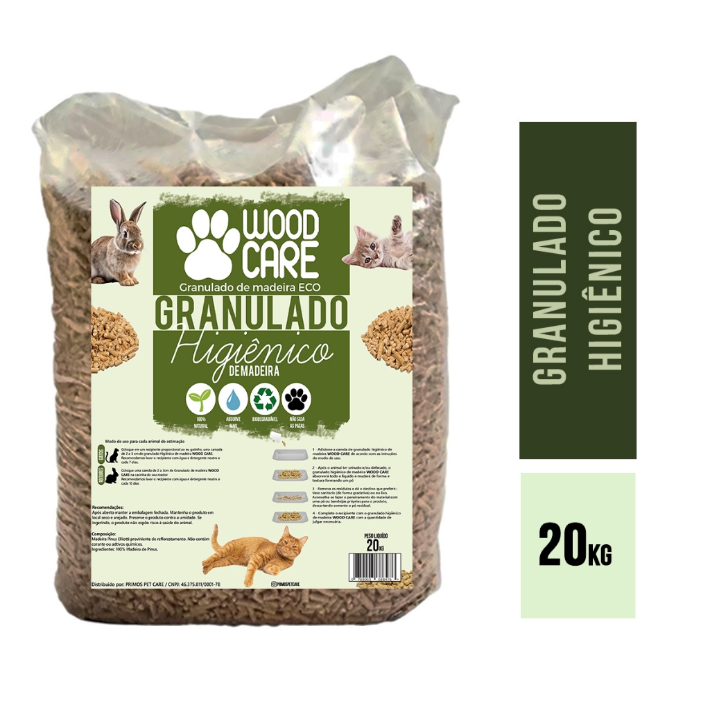 Granulado de Madeira Higiênico Areia para Gatos e Roedores - BIODEGRADAVEL 20 KG