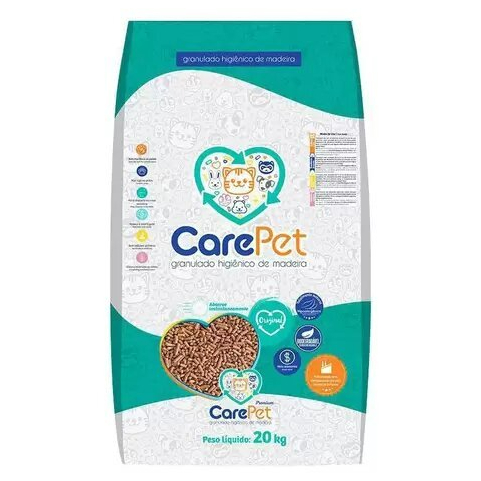 Areia Granulado De Madeira Care Pet Premium Para Gatos, Pássaros e Roedores - 20 kg