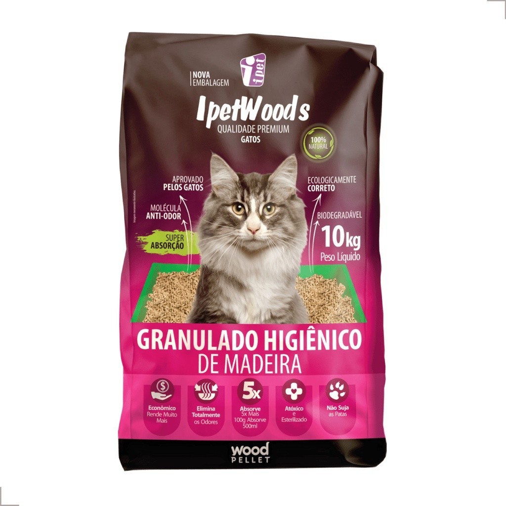 Granulado De Madeira Higiênico para Gatos 10 Kg - Ipet Wood's
