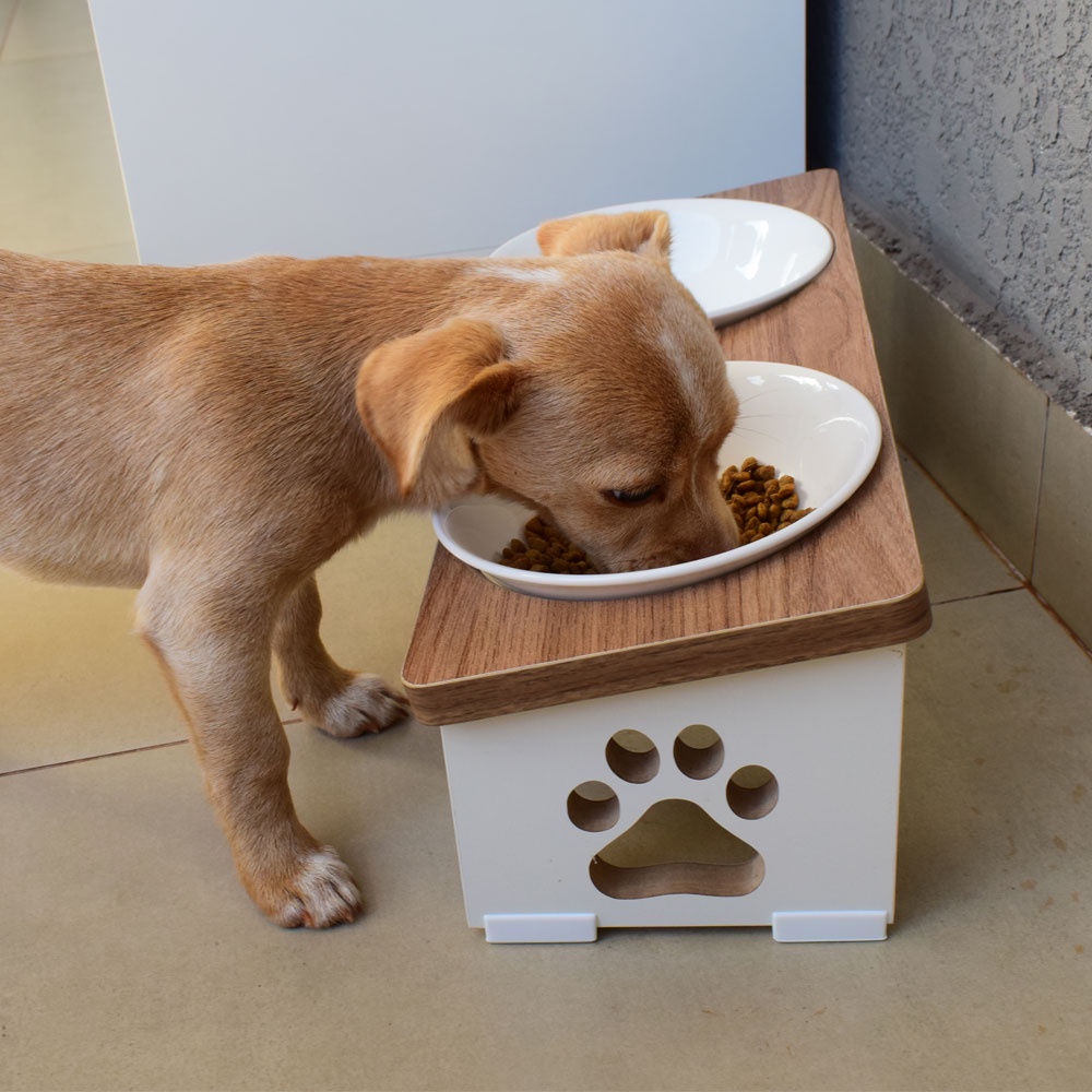 Comedouro Bebedouro Pet MDF Elevado modelo Cachorro Duplo