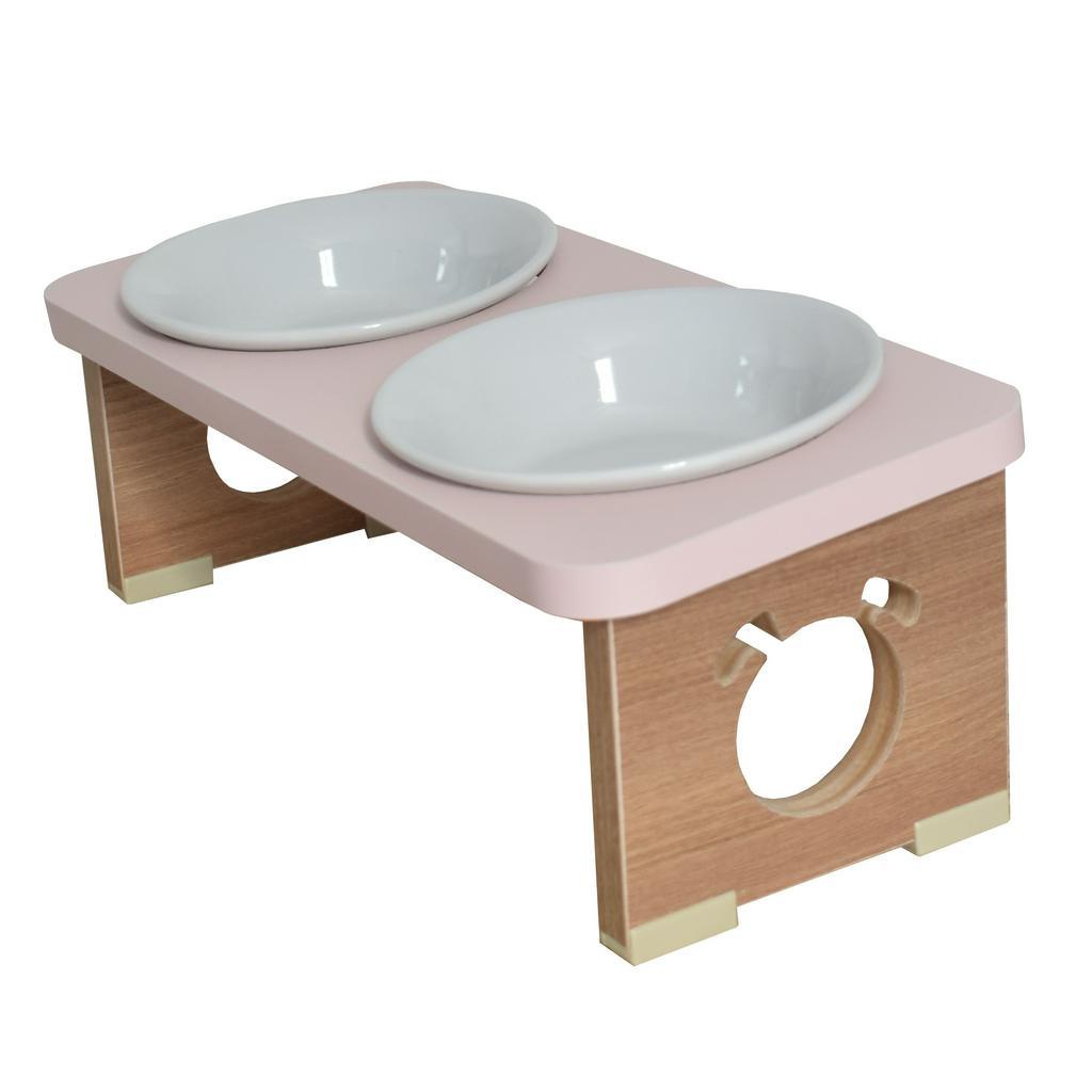 Comedouro Bebedouro em Mdf Elevado Duplo Pet Gato Cachorro Com Tigelas - Pets de Pequeno Porte