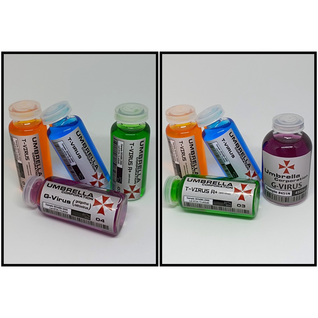 Frascos do T-Virus G-Virus da série Resident Evil - Nerd Game Umbrella Nemesis