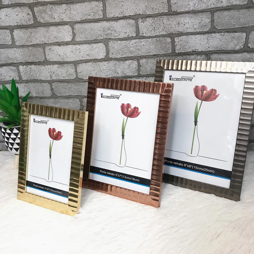 Porta Retrato Foto 10x15, 13x18 ou 15x20 Moldura Metalizada Geometrico Rose Gold, Dourado ou Bronze PT4