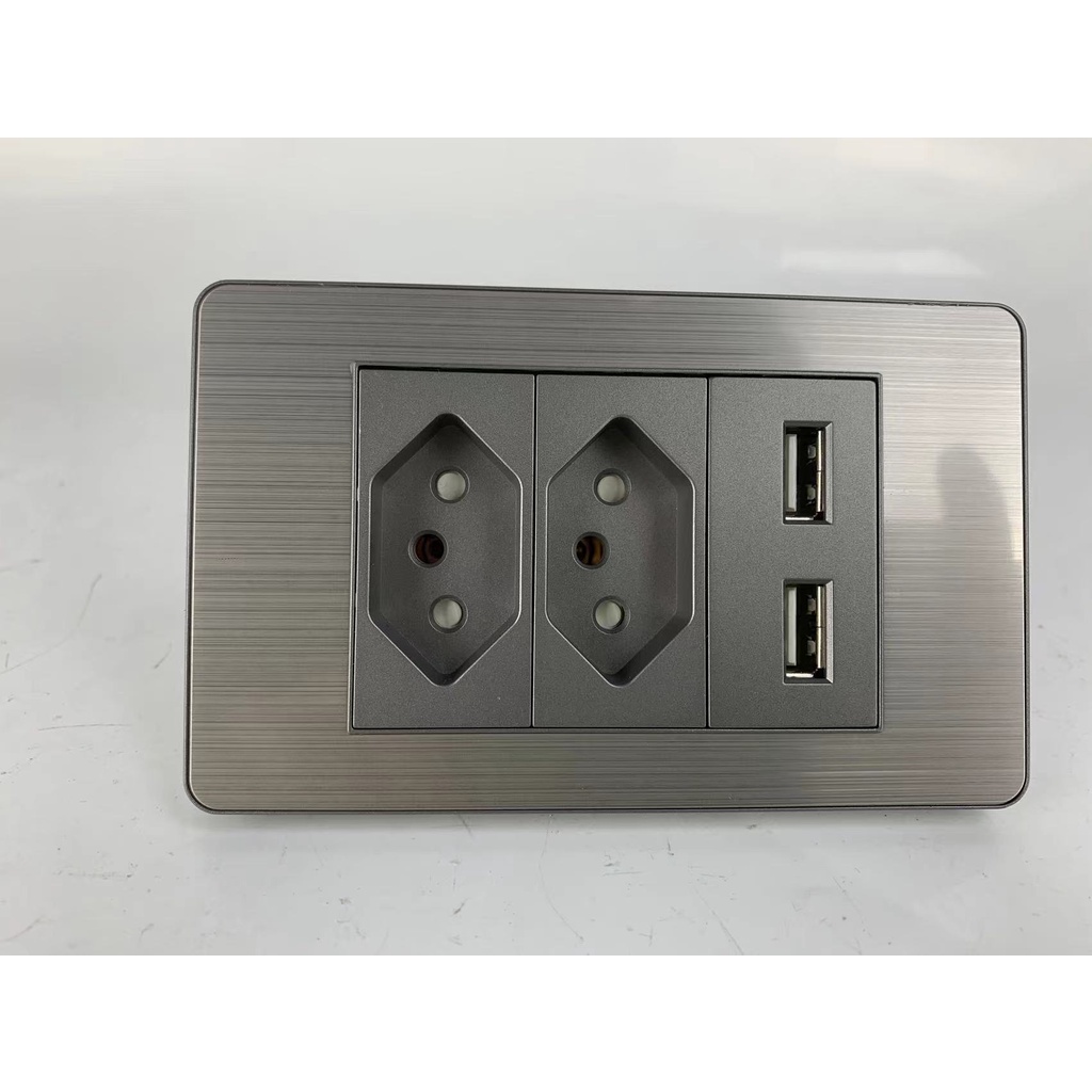VISWE Brasil 2A Plugue De Carregamento + Soquete + usb/Aço Inoxidável material À Prova De Fogo Para Aparelhos Domésticos/Cinza