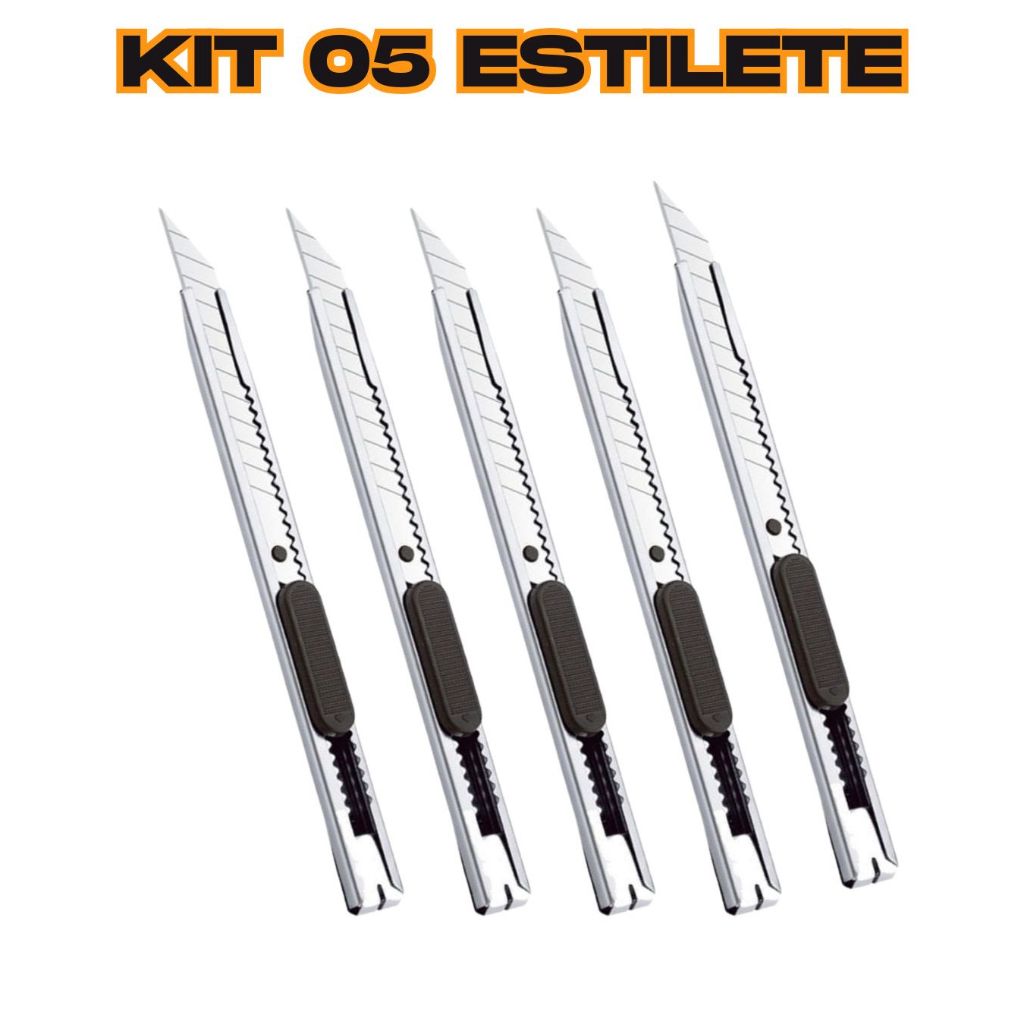 Kit 05 Estilete Prata Basic com Lâmina 9mm 30Graus Precisao e Corte Envelopamento Insulfim EPI