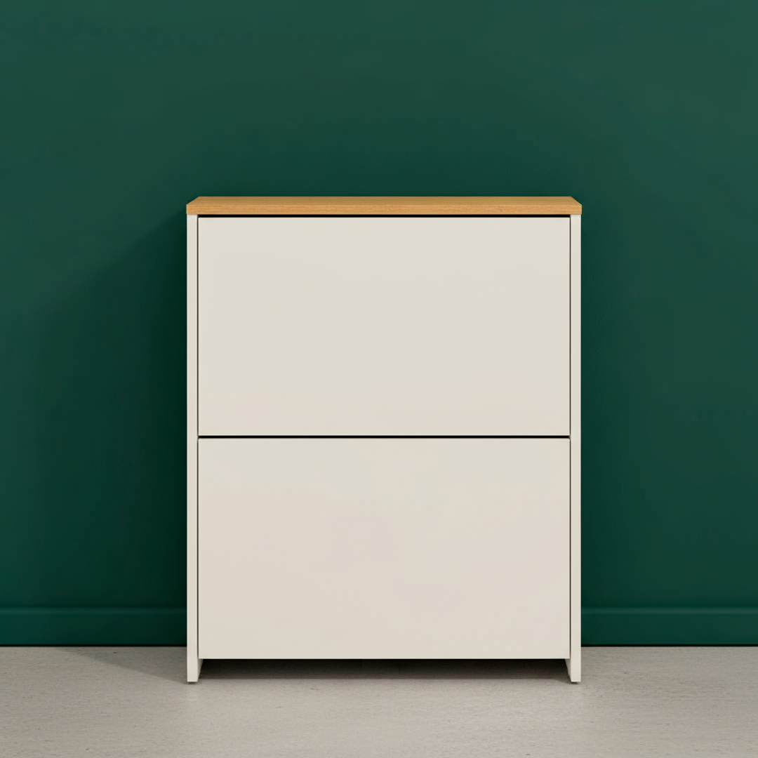 Sapateira Mel com 2 Portas Basculantes para Quarto ou Hall de Entrada - Off White com Freijó
