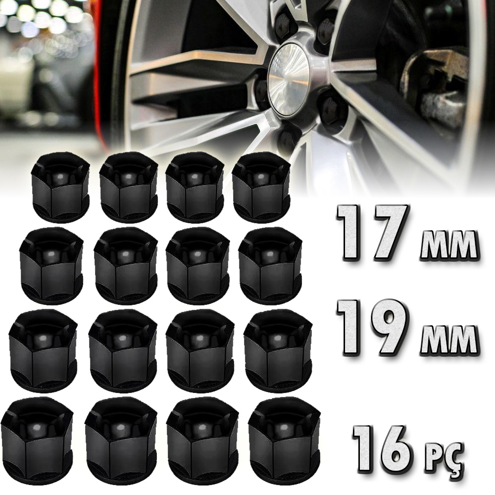 Jogo Capa Parafuso de Roda 16 Peças Preto 17mm ou 19mm Liso - Escolha.