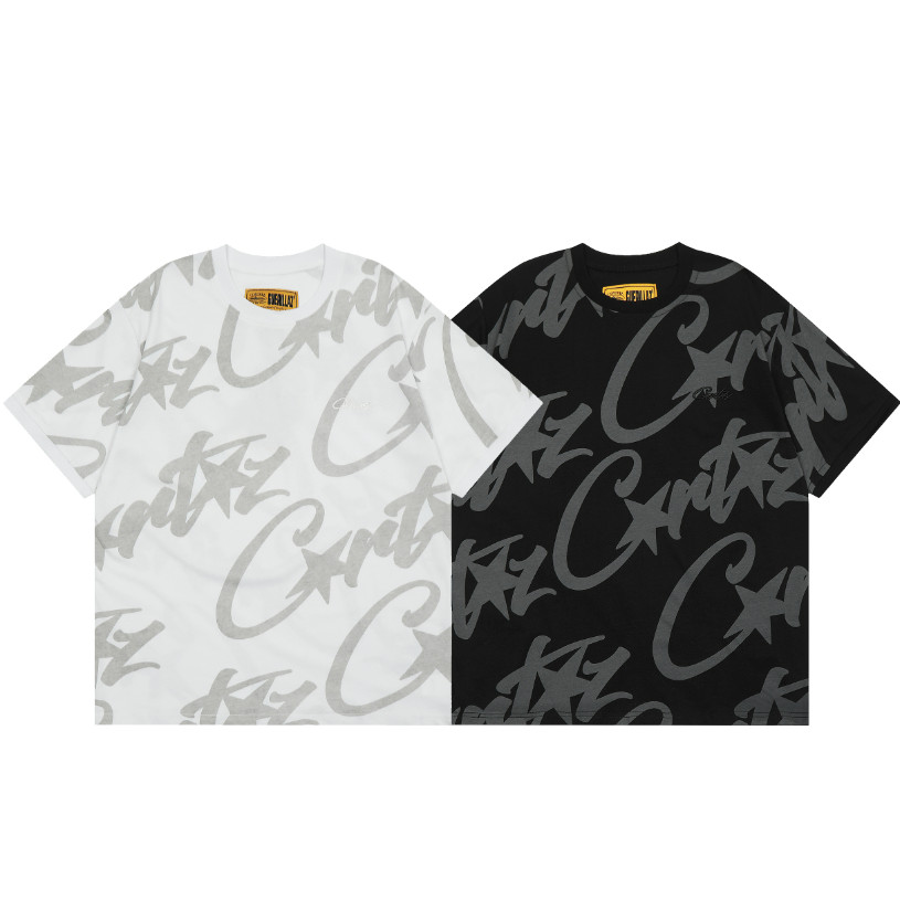 Novo estilo corteiz estampa completa básica estilo clássico bordado + camiseta Casual estampada de manga curta