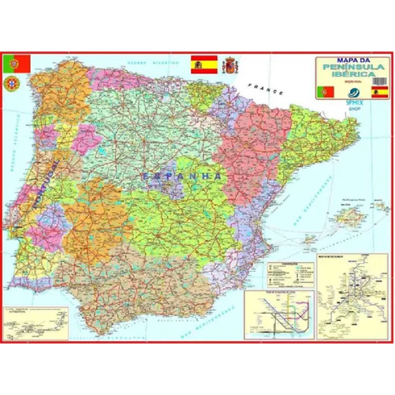 Mapa Portugal Espanha Península Ibérica 90 cm X 120 cm