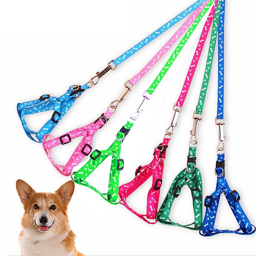 Coleira de Peitoral Cachorro Arreios e Trela Pet Para Cachorros Cães De Estimação Gatos Ajustável Filhotes Colete Com Guia