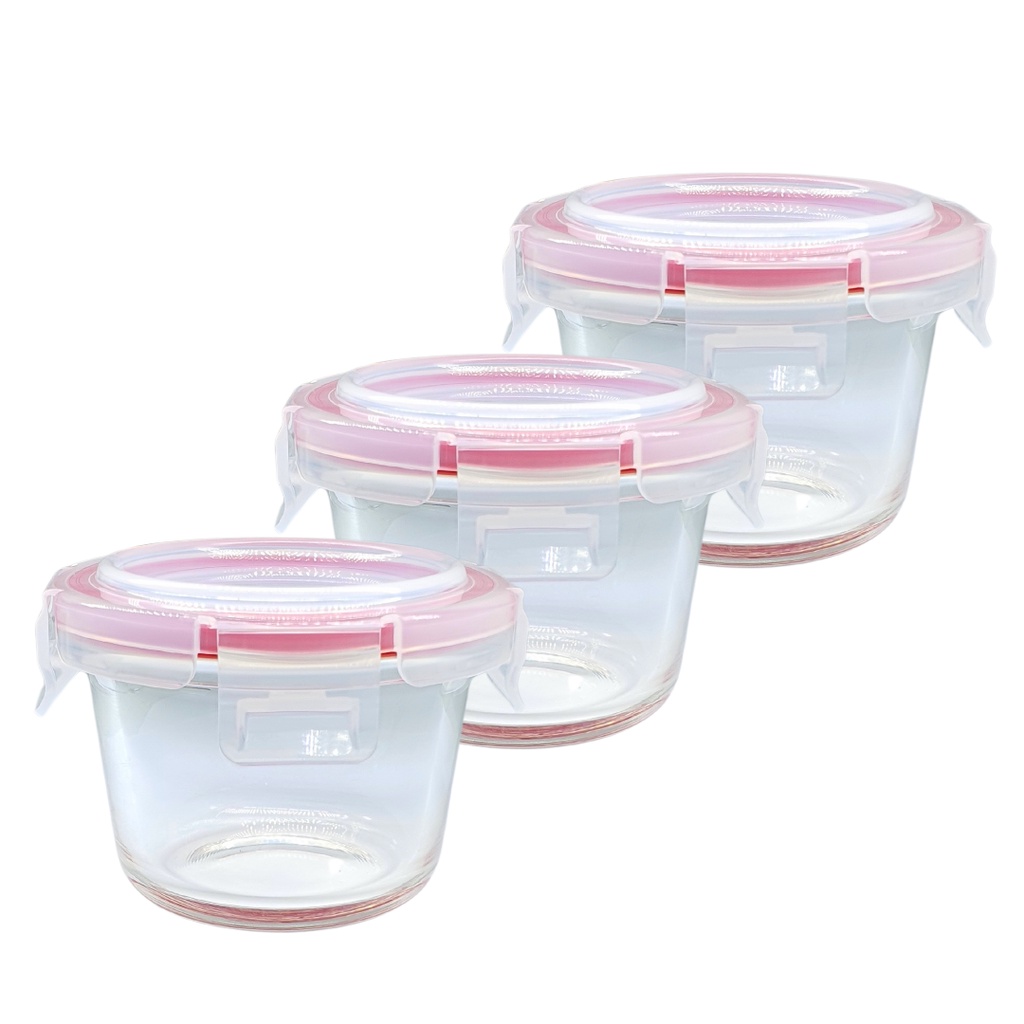 Conjunto 3 Potes Herméticos De Vidro Borossilicato Fit Frutas Tampa Condimentos 200mL