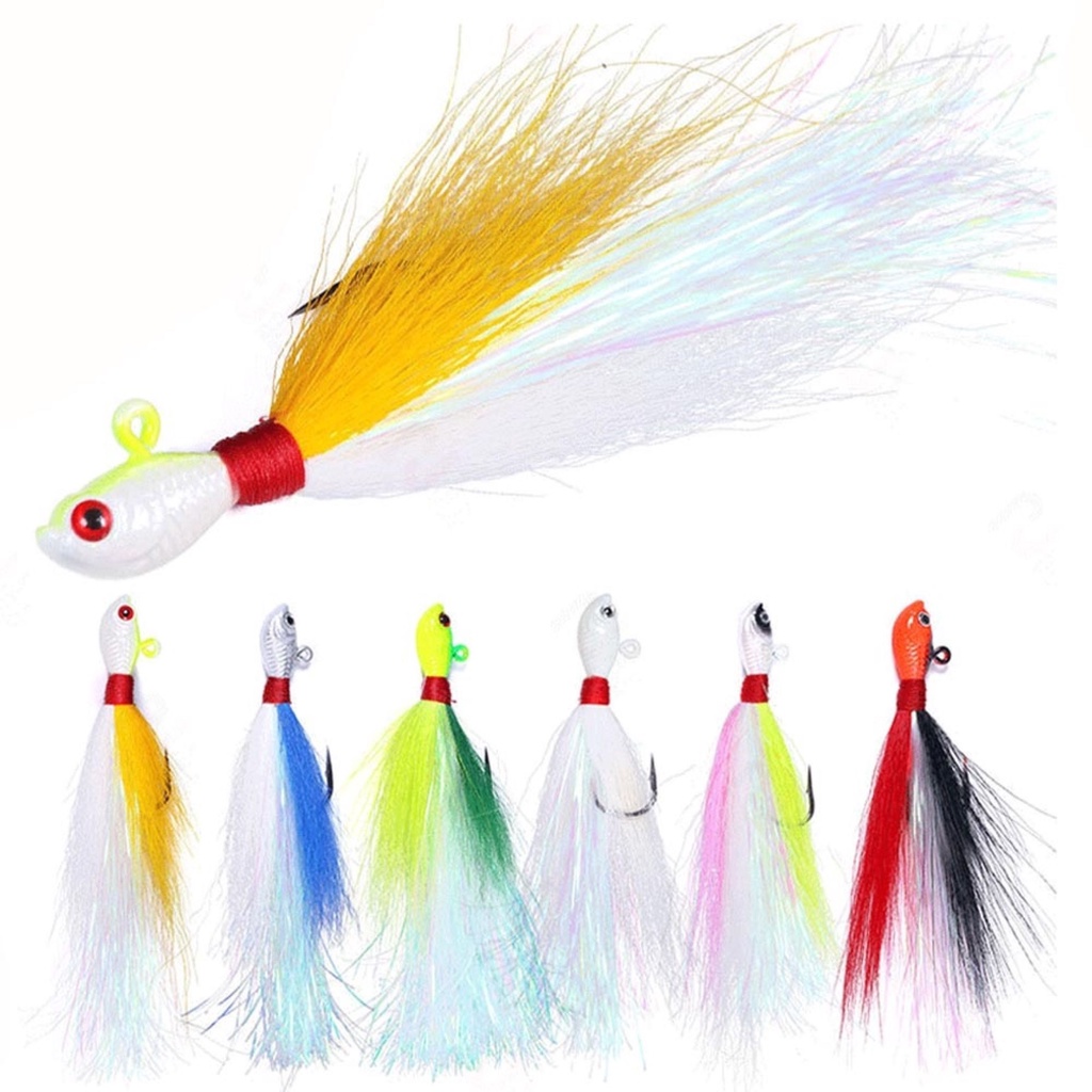 Kit com 04 Isca Artificial de fundo Jig Xuxinha Com Penacho Pena de 7,5 cms e 25 gramas Pesca Dourado Traira Robalo Black Bass Tucunare