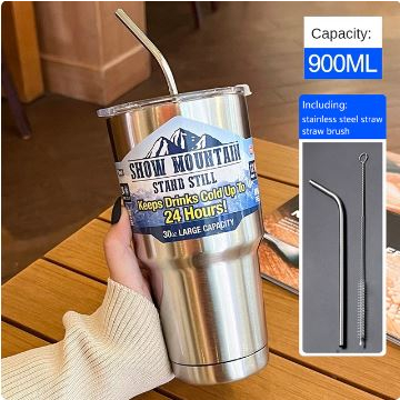 Copo Térmico Aço Inoxidável 304 900ML Camada Dupla Cerveja Café Chá Chopp C/ Tampa E Canudo