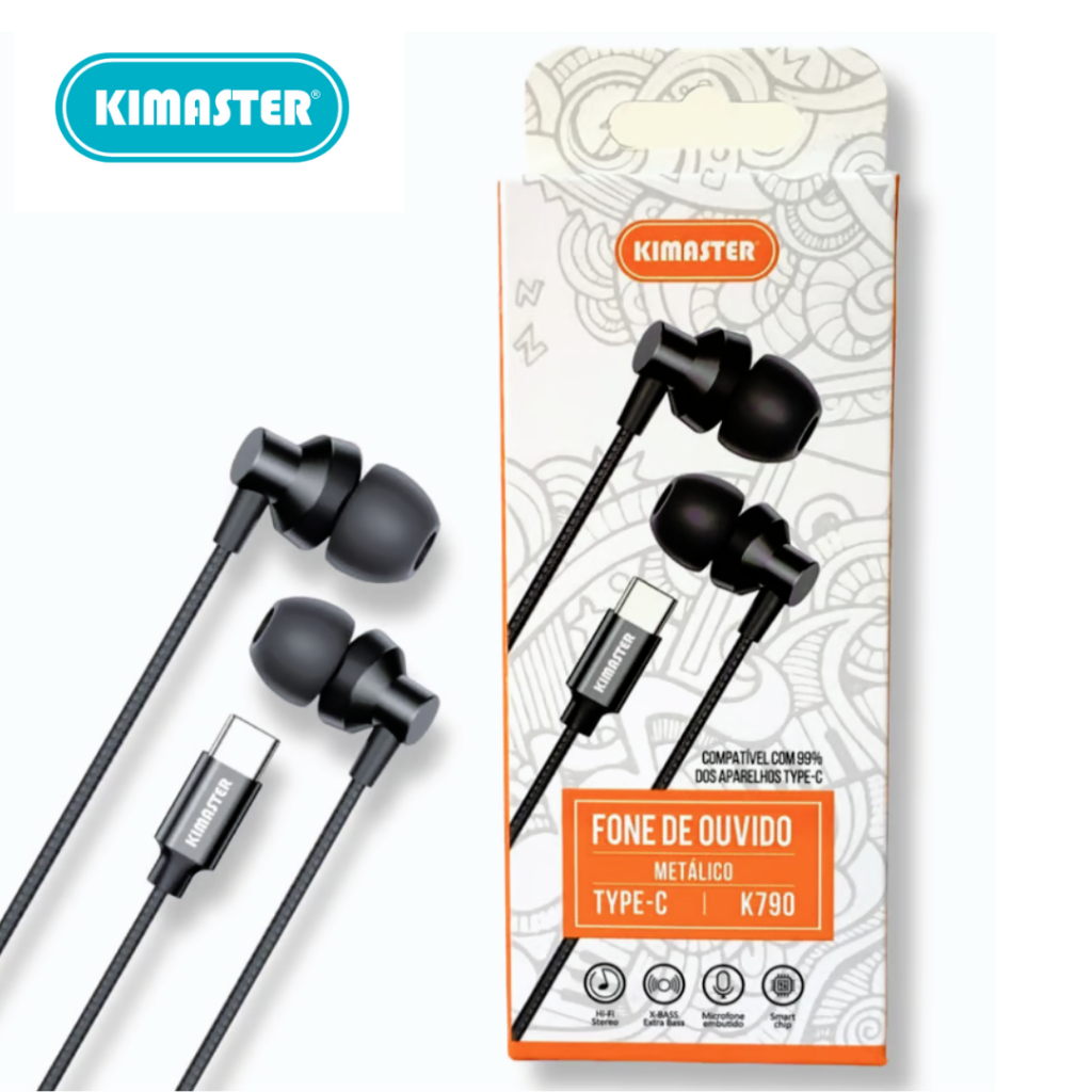 Fone De Ouvido Tipo C USB-C Metalico Som Alta Qualidade c/ Microfone Original Kimaster