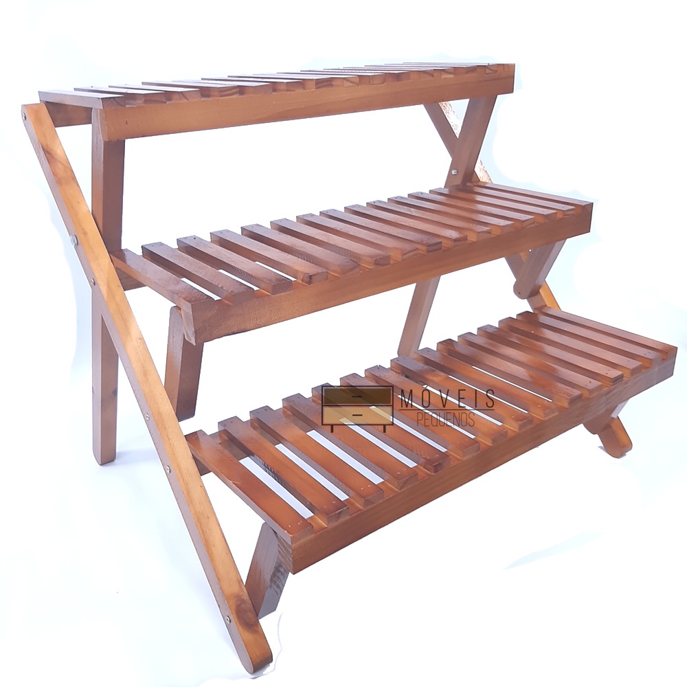 Floreira escada de madeira maciça envernizada na cor imbuia enfeite para a sala estante para plantas jardim