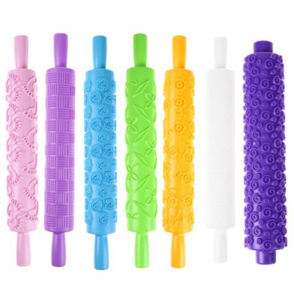 Rolo de Massa Portátil com Diversos Relevos Decorativos para Massas Bolo Cookies Diversas Cores e Formatos