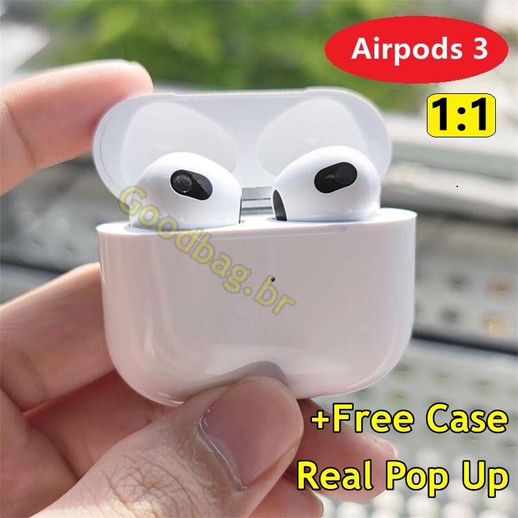 Airpods 3 Gen Fones De Ouvido GPS Bluetooth Sem Fio Renomear Super Bass Com Microfone