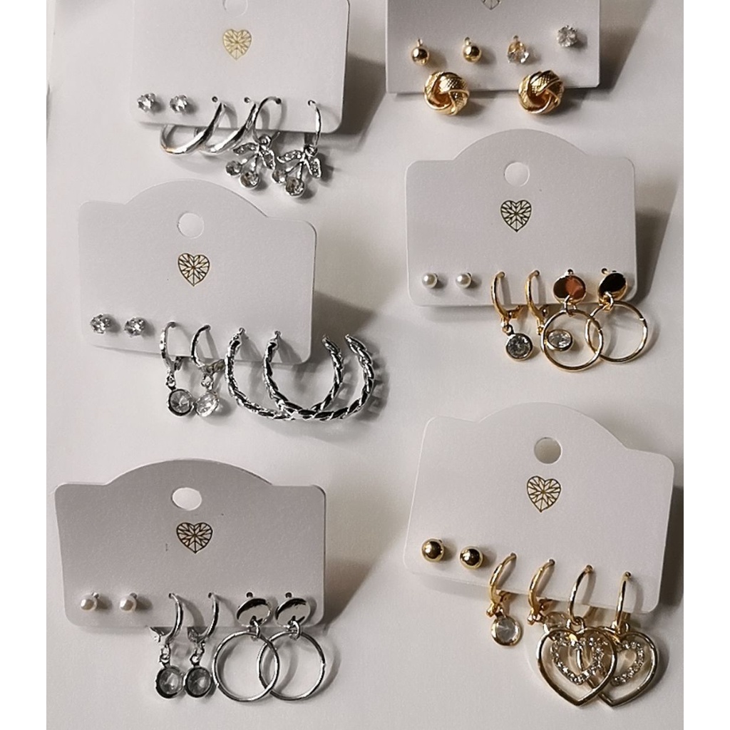 Conjunto de brincos 3 pares / muitos estilos / dourado / prateado