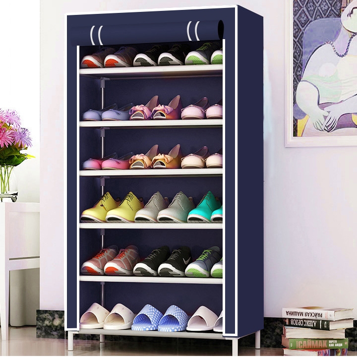 Sapateira Organizador Multiuso em Tecido e Porta com Ziper Armário Rack 7 Prateleiras para Organizar Sapatos Chinelos Roupas