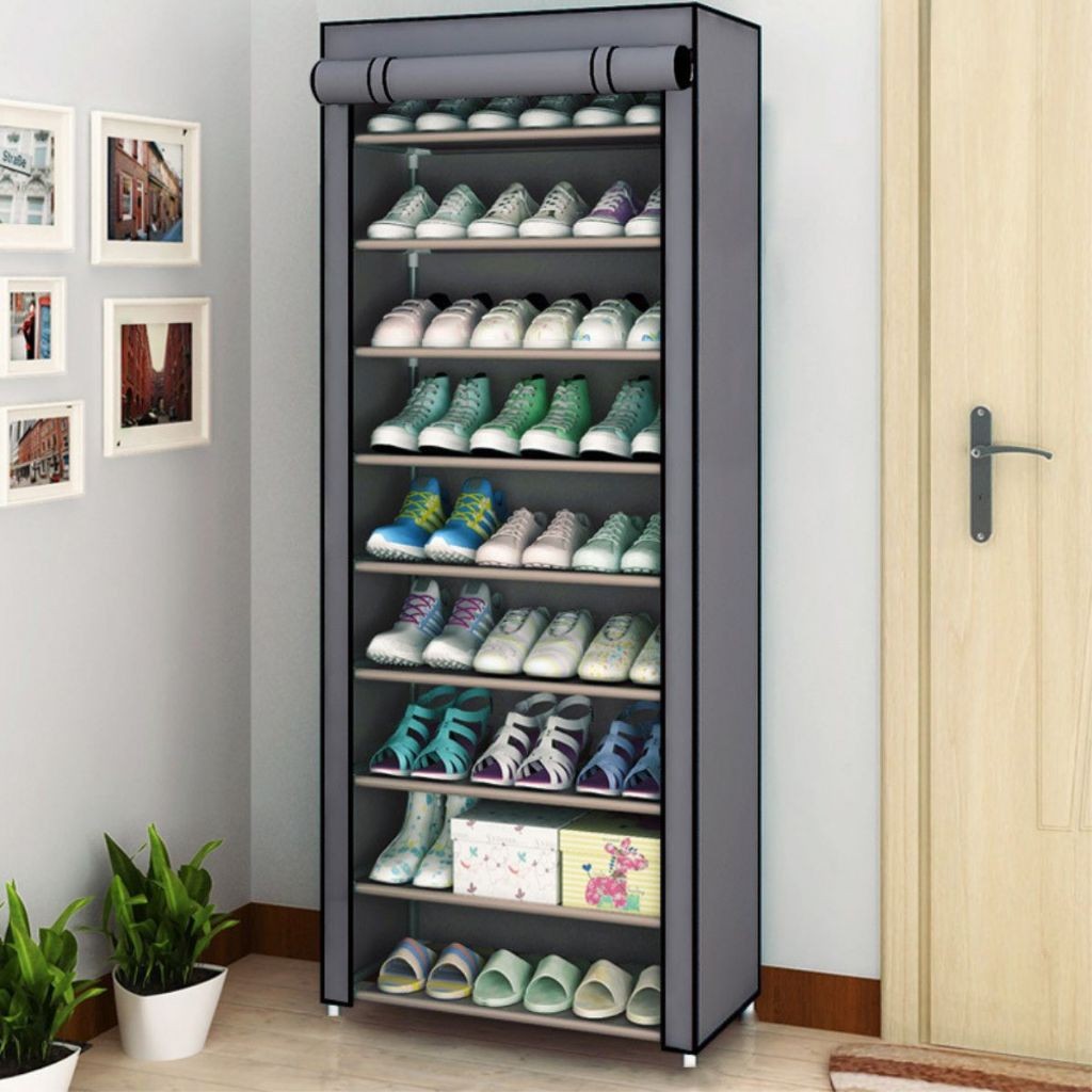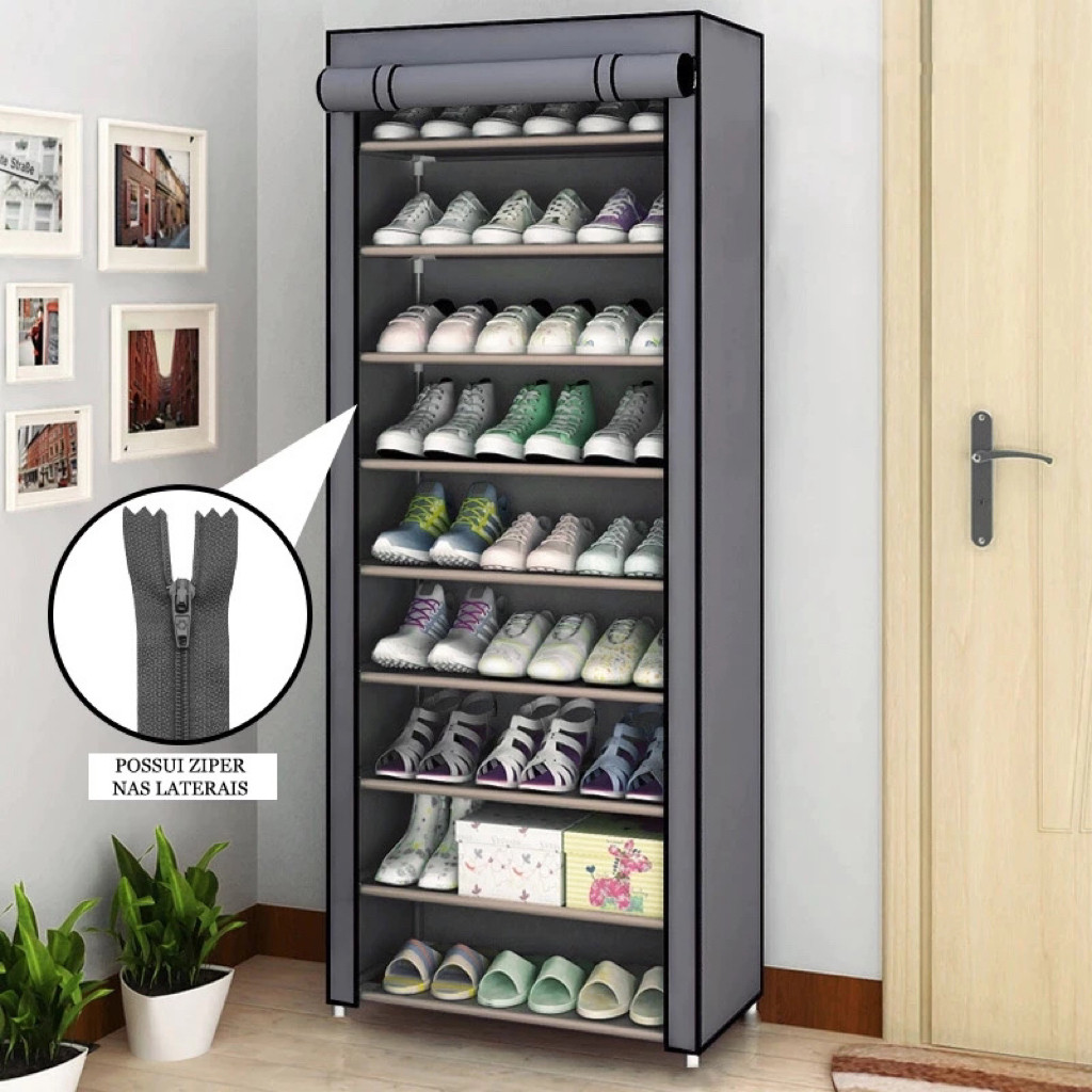 Sapateira Organizador Multiuso Tecido e Porta com Zíper Armário Rack Prateleiras para Organizar Sapatos 9 Prateleiras