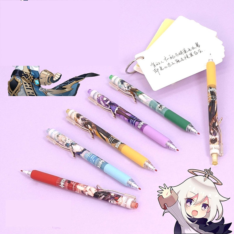 Caneta Click Genshin Impact Gel Tinta Preta 0.5mm