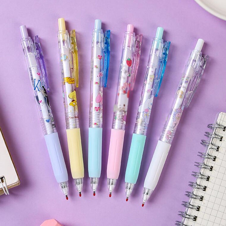 Caneta Click Personagens Sanrio Cristal Fofo Cute Kawaii Gel Tinta Preta 0.5mm