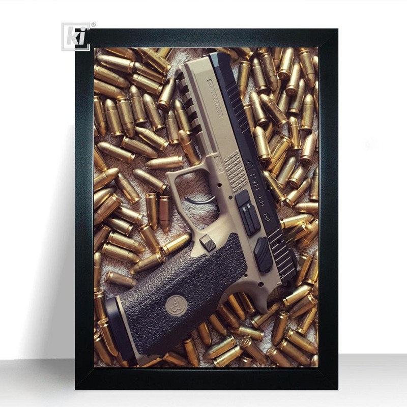 Quadro Decorativo Armas Pistolas e Revolver Moldura 32x44cm