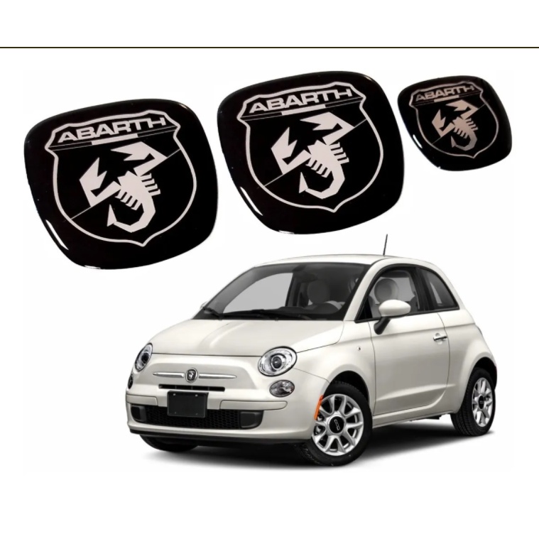 Kit Adesivo Emblema Fiat 500 Frontal E Traseiro Abarth Preto