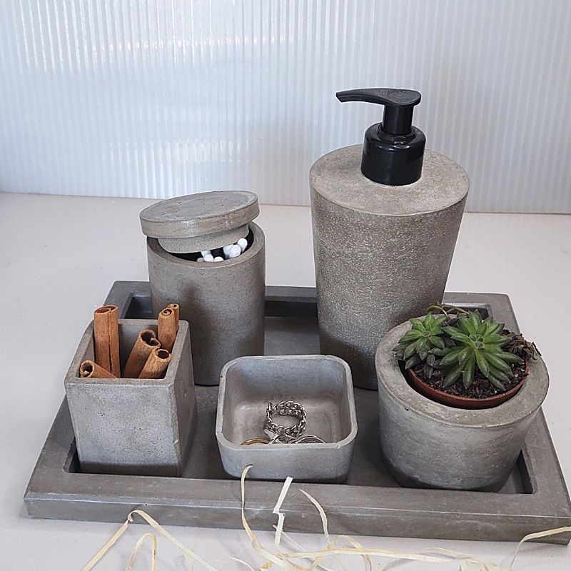 Kit Bandeja de concreto cimento Decorativa Redonda e oval
