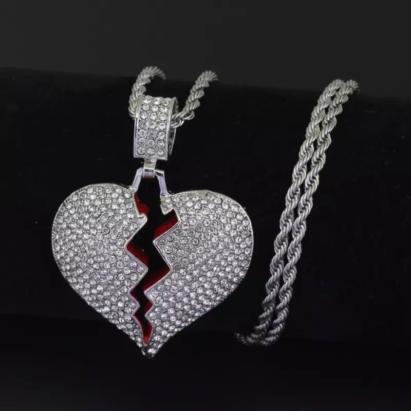 Colar corrente Ice cravejado Coração partido 50cm Modelo Ultra Premium Hip Hop A+++