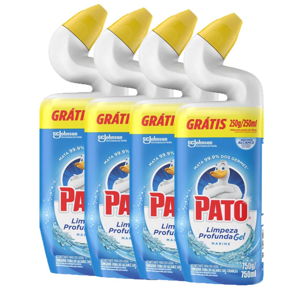Kit 4 Limpadores Sanitário Pato Limpeza Profunda Gel Marine 750ml Grátis 250g/ml