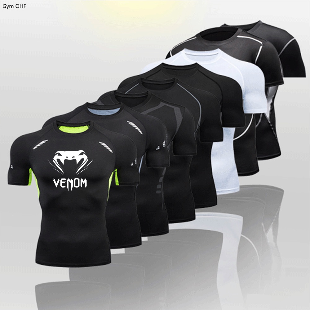 Homens Quick Dry Sport MMA Fitness Clothing Preto Branco Corrida Camisa De Ginástica Camisas De Compressão