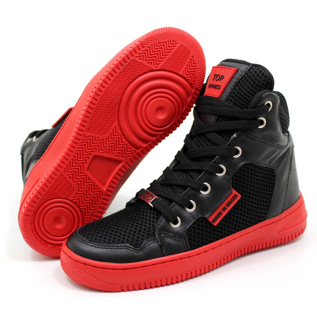 Tenis Botinha Sneaker Cano Alto Moda Marca Top Fitness Confortável Preto/Vermelho