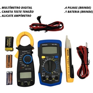 Kit 3x1 Multimetro digital caneta e alicate Profissional Alicate Amperímetro Caneta tensão Alerta Som - Exbom
