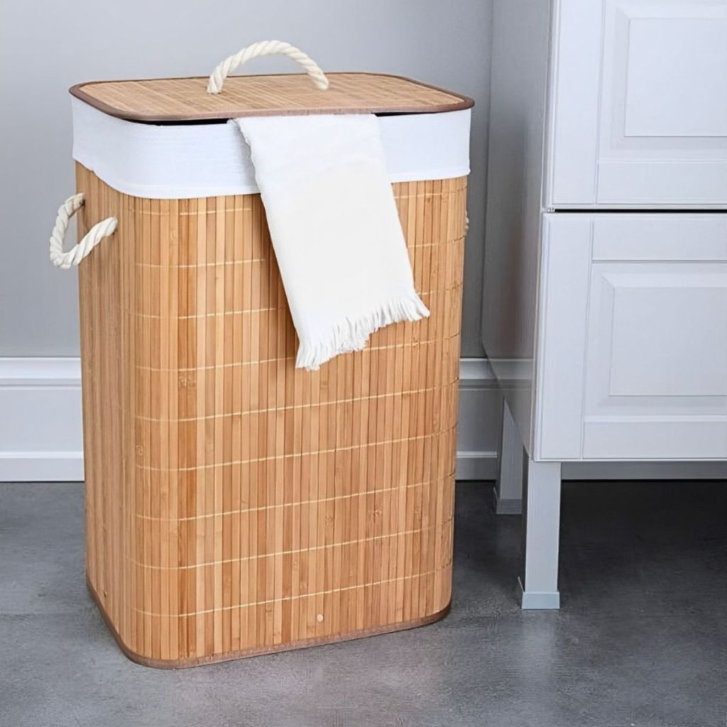 Cesto De Roupas Bambu Retangular Banheiro Lavanderia