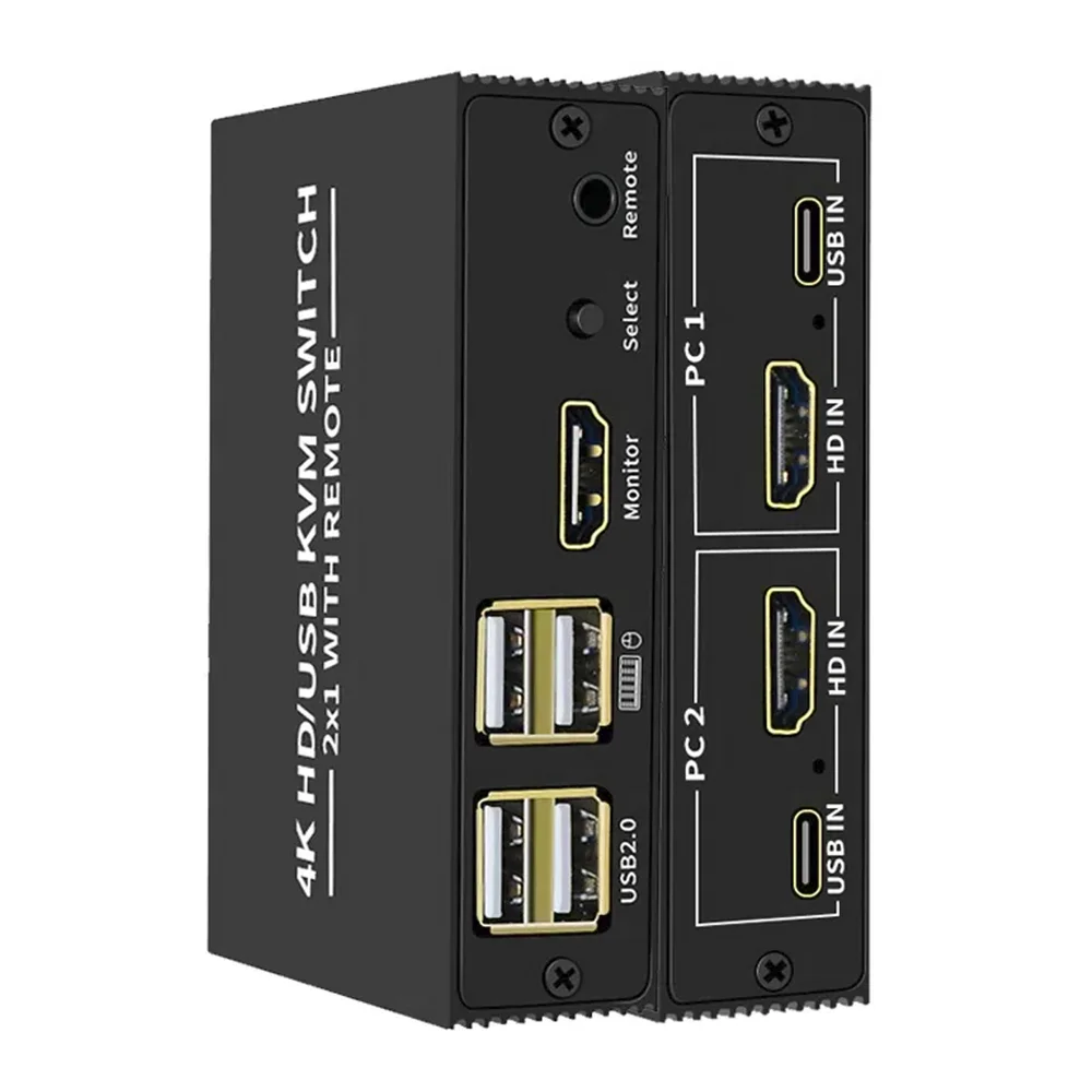 Chaveador Switch HUB KVM 2 Portas HDMI 4 Portas USB Type-C USB Conexão Pc Monitor Teclado Mouse Suporte HD 2K 4K