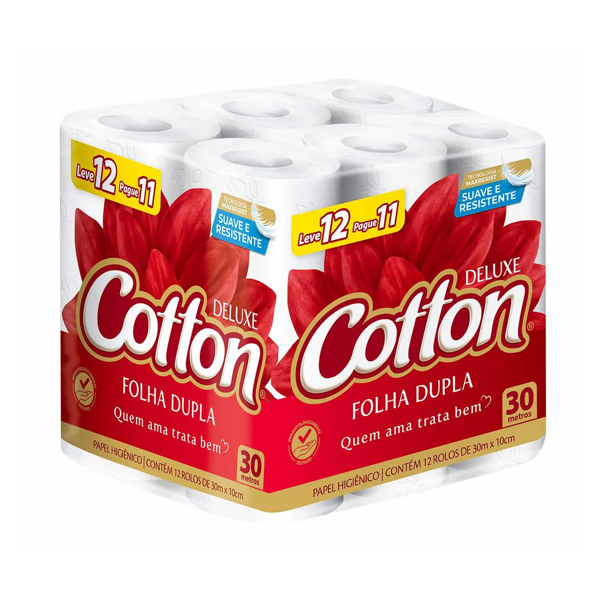 Papel Higiênico Cotton Folha Dupla Neutro Compacto 12 rolos
