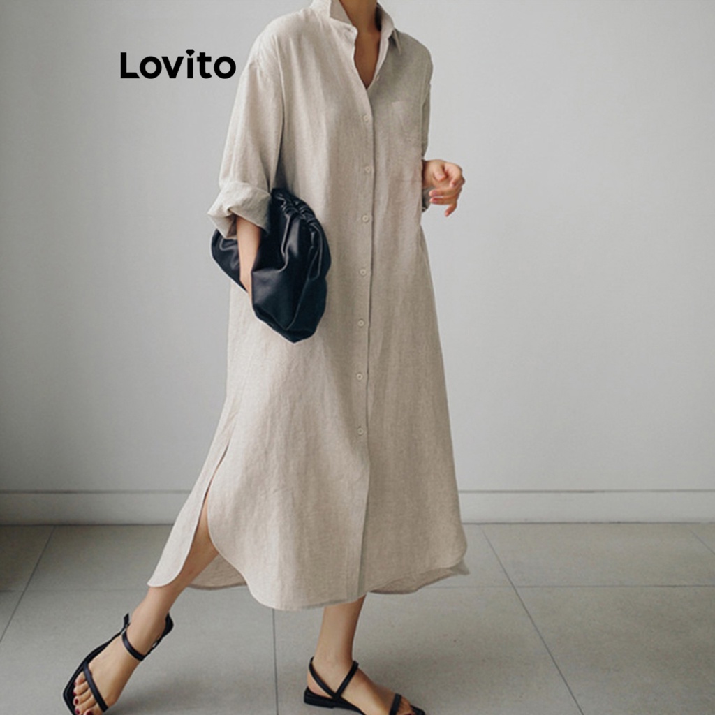 Lovito Vestido Feminino Elegante Com Botões Frontais Lisos E Divididos LNL46179