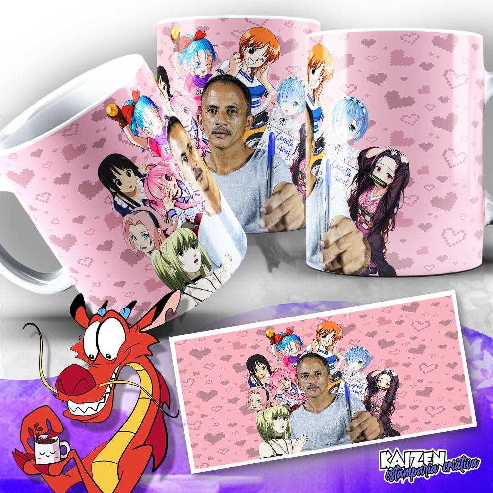 Caneca Meme - Manoel Tsé Gomes - Fãs do Manoel - Anime - Caneta Azul - Cerâmica