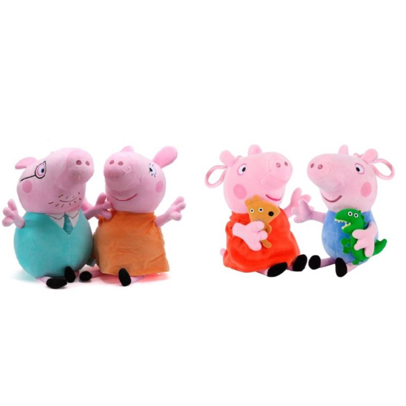 peppa family pai e mãe e peppa pig e George Pelucia com música 20 cm