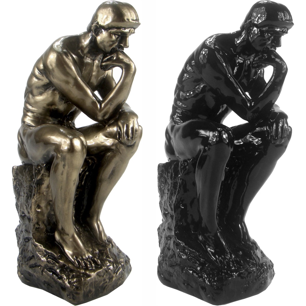 Estatueta O Pensador Rodin Escultura - Linha luxo ônix ouro metálico
