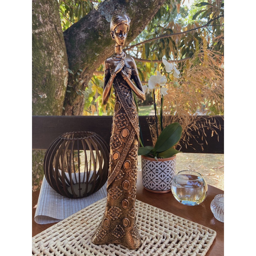 Estatueta Africana Suspirando - Decoração - Enfeite - Linha luxo ônix ouro metálico