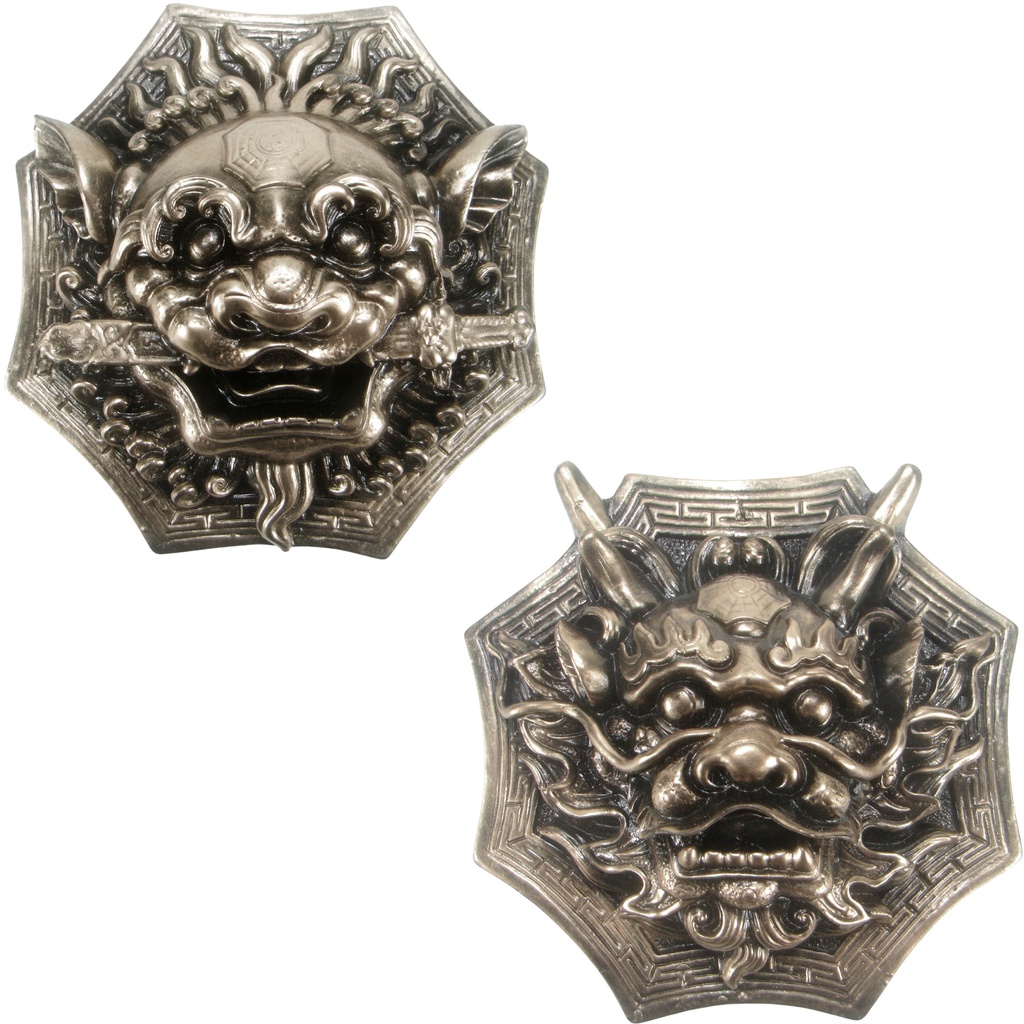 Estatueta Conjunto Carranca Dragão e Tigre - Linha ônix ouro luxo