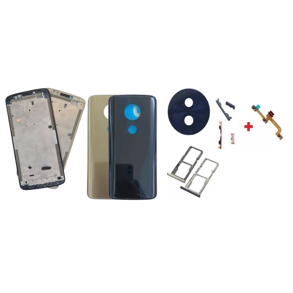 Kit Moto G6 Play / Moto E5 Tampa traseira + Lente de vidro + Aro Chassi + Botões + Flex Power Volume + Gaveta de chip