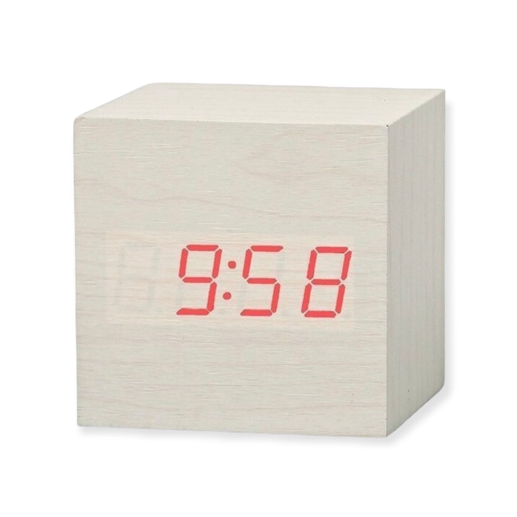 Relógio Despertador digital de mesa LED estilo madeira Cubo quadrado tipo 1