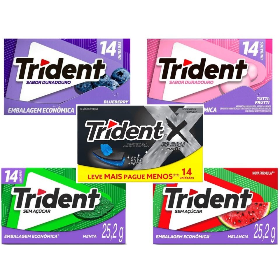 chiclete Trident C/21 Menta/Morango/Tutti-Frutti/Melancia/Herbal/intense
